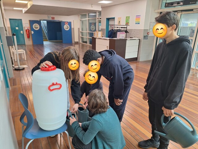 L’année dernière, nous avons mis en place un système de recyclage d’eau à la cantine (anti gaspillage). Nous avons mis en place ce projet dès la rentrée, nous arrosons déjà nos plantes vertes avec cette eau récoltée. Notre collège est un éco collège, nous avons obtenu il y a un an le label E3D de niveau 2. Ce projet nous encourage à continuer dans cette voie. Merci beaucoup pour vos efforts à toutes et à tous.